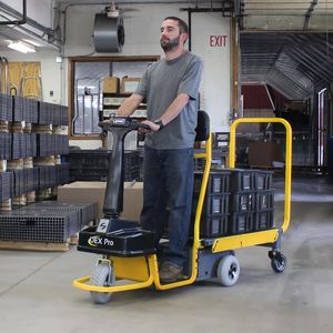Dex Pro permite a los empleados cubrir más terreno y mover materiales de manera segura dentro y fuera de áreas donde otros carritos industriales no pueden.