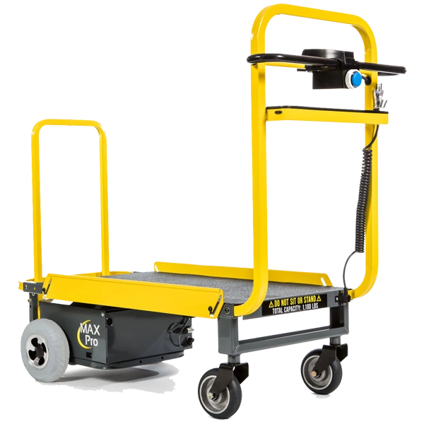 MAX Pro ofrece una capacidad de carga de 680 kg. Siendo un camion de plataforma mas pequeño a los comparables. Permite el transporte rápido de materiales mientras reduce la tensión sobre el trabajador y es fácil de maniobrar en espacios pequeños.